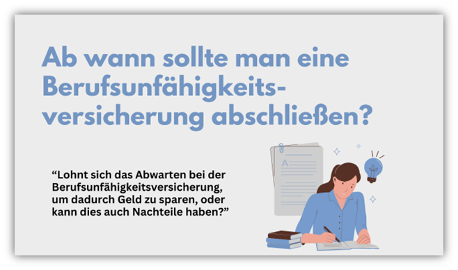 Es stellt sich die Frage: Lohnt sich das Abwarten bei der Berufsunfähigkeitsversicherung, um dadurch Geld zu sparen, oder kann dies auch Nachteile haben?